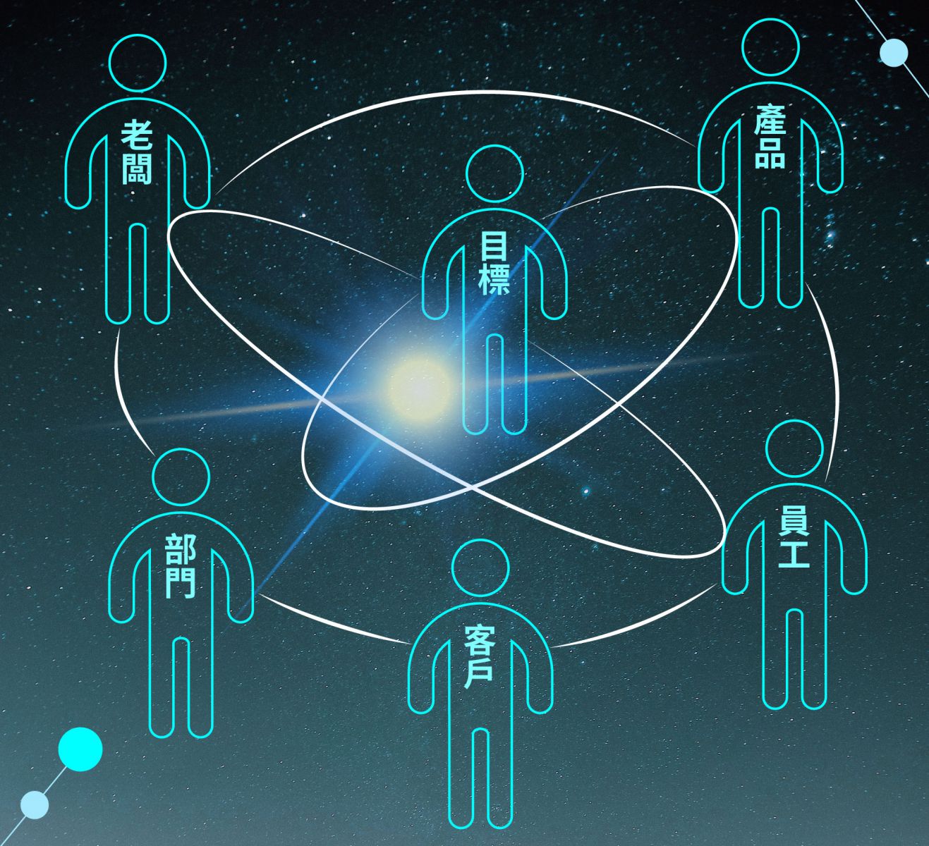 把公司裡的角色(老闆、員工、部門、產品、客戶)放進一個能量場域,
