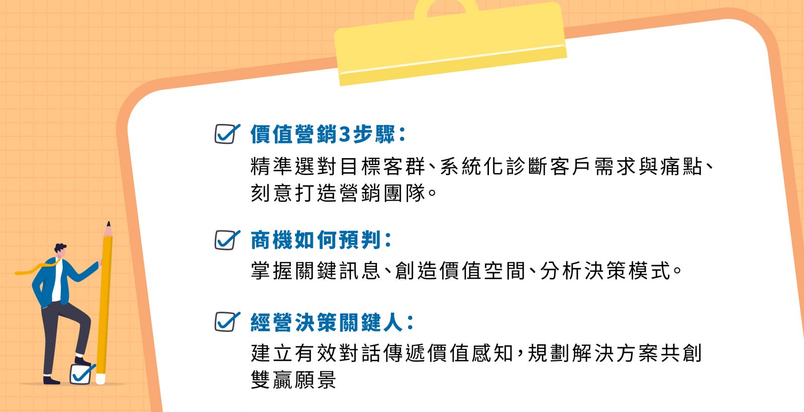 • 挖掘真正的需求,讓客戶感受價值進而成交